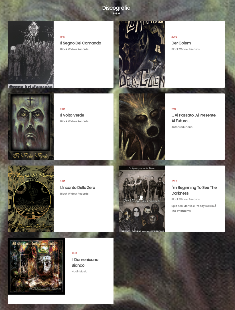 Gli album pubblicati successivamente al disco di esordio nel corso degli anni sono: Der Golem (2001), Il Volto Verde (2013), …al passato, al presente, al futuro Live in Studio (2017), L’Incanto dello Zero (2018), Il Domenicano Bianco (2022) e Sublimazione - Live (2025). Numerose sono state anche le partecipazioni a raccolte.